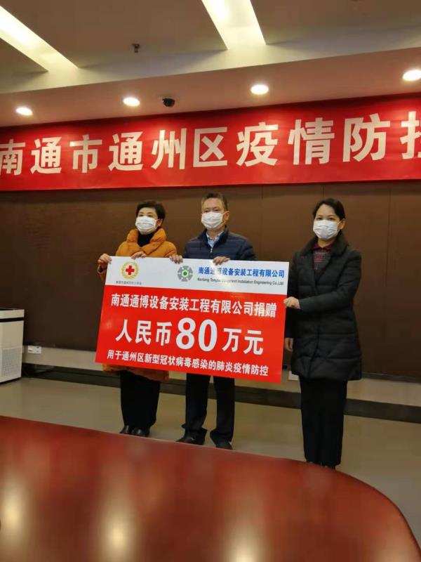 南通通博捐贈80萬元 關鍵時刻顯擔當