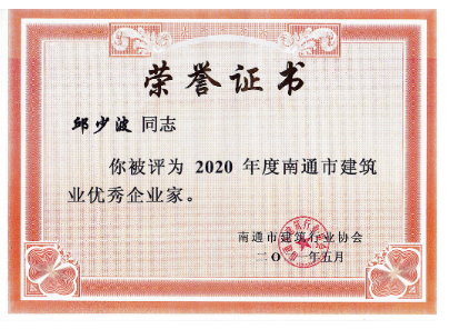 近日,南通市建筑行業(yè)協(xié)會(huì)2021年會(huì)暨六屆三次理事會(huì)勝利召開(kāi),會(huì)議舉行了授牌儀式,公司董事長(zhǎng)、總經(jīng)理邱少波參加會(huì)議并上臺(tái)領(lǐng)獎(jiǎng)。會(huì)上發(fā)布了2020年度南通市建筑業(yè)“雙三十強(qiáng)”企業(yè)及“三優(yōu)”的評(píng)價(jià)結(jié)果。公司榮獲2020年度南通市建筑業(yè)最具成長(zhǎng)性“三十強(qiáng)”企業(yè),董事長(zhǎng)、總經(jīng)理邱少波榮獲2020年度南通市建筑業(yè)“優(yōu)秀企業(yè)家”。
